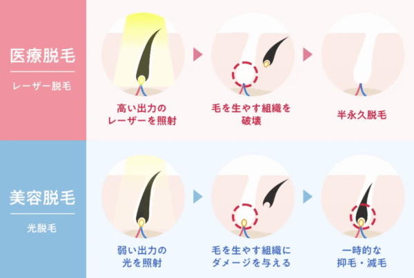 | 項目 | 医療脱毛 | エステ脱毛 |